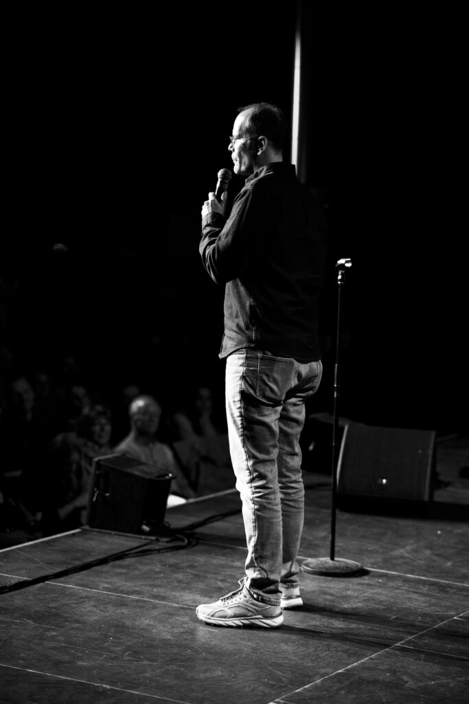 Große Themen betrachten und ihre Ernsthaftigkeit an den kleinsten Beobachtungen scheitern lassen – das hat sich Mario auf seine charmante Art vorgenommen. Schnell befindet sich das Publikum mit ihm in einer kichernden Gruppentherapie.
