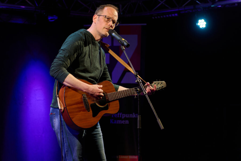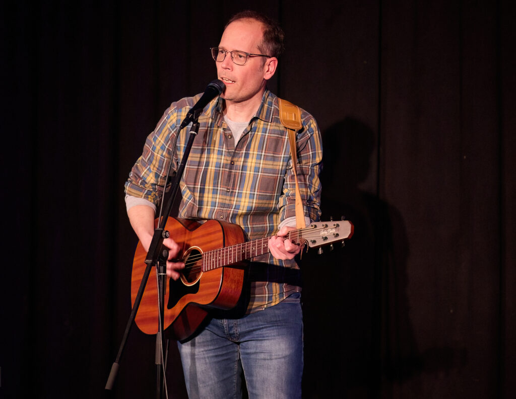 Mario Siegesmund spricht und singt auf der Bühne über Dinge, die uns ein warmes Gefühl geben.
